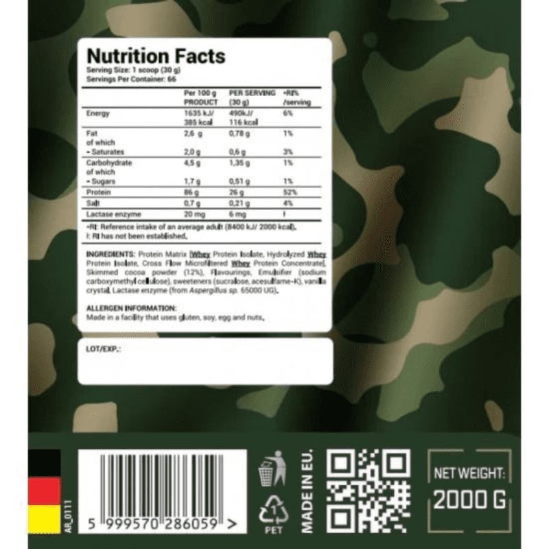 ISO 1 (2000 гр) Army 1 е идеалният избор за всеки, който иска да подобри своето възстановяване и да подпомогне мускулния растеж. Суроватъчният изолат е известен със своето високо съдържание на протеин и ниско съдържание на мазнини и въглехидрати. Основните му предимства включват:
